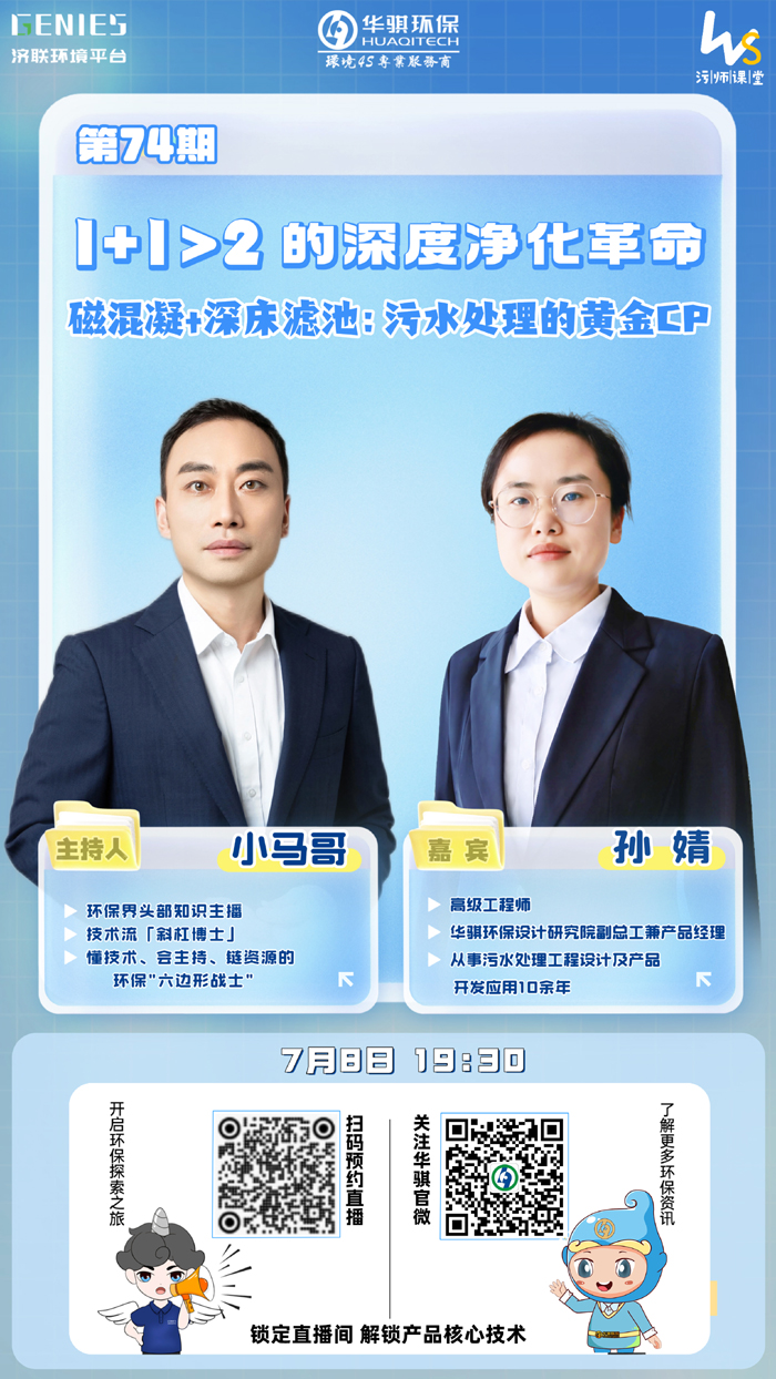 預告!7月8日19:30 | 直播:1+1大于2的深度凈化革命 磁混凝+深床濾池:污水處理的黃金CP