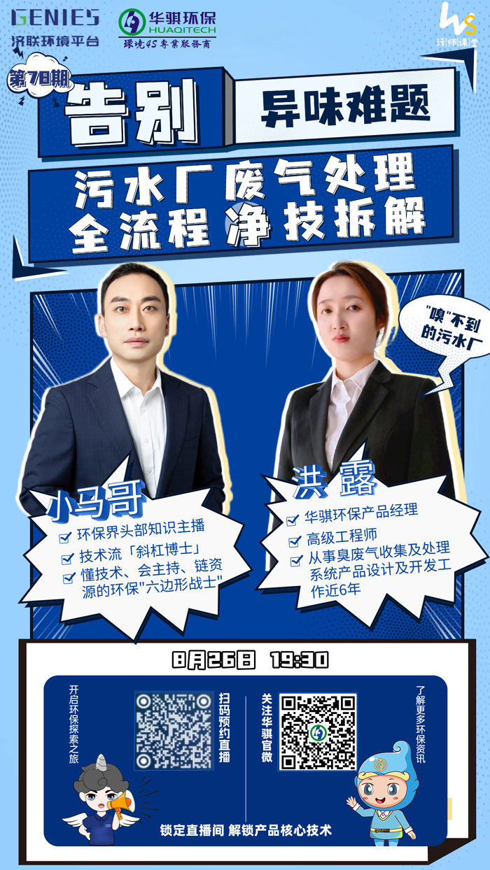 預(yù)告!8月26日19:30 | 直播:告別異味難題 污水廠廢氣處理全流程“凈”技拆解