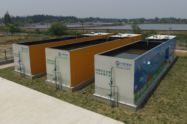 “高效仿生水草污水處理平臺”是針對鄉(xiāng)鎮(zhèn)、農(nóng)村等中小型污水處理項(xiàng)目開發(fā)的,是脫氮除磷村鎮(zhèn)污水處理專利技術(shù)(專利號ZL201310179893.6)的良好應(yīng)用。該平臺改變了現(xiàn)有很多小型生活污水處理裝置雖然結(jié)構(gòu)上實(shí)現(xiàn)了一體化,但附屬設(shè)備多、結(jié)構(gòu)不緊湊、抗沖擊負(fù)荷差等缺點(diǎn)。