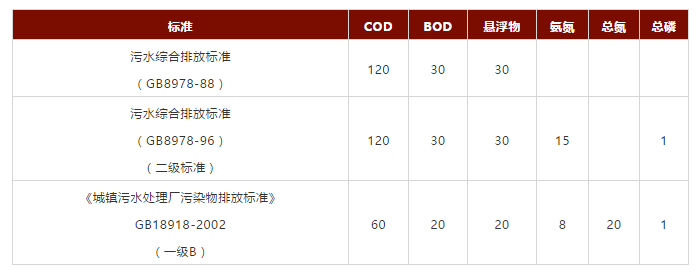 我國城鎮(zhèn)生活污水處理廠建設(shè)早期適用的是《污水綜合排放標(biāo)準(zhǔn)》,針對污水去向執(zhí)行不同級別的排放標(biāo)準(zhǔn)。第一個(gè)是GB8978-88版本,后來經(jīng)歷了一次修訂,出臺(tái)了GB8978-96版本。