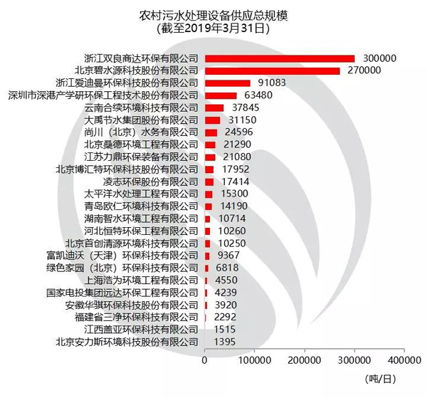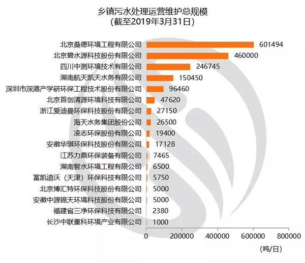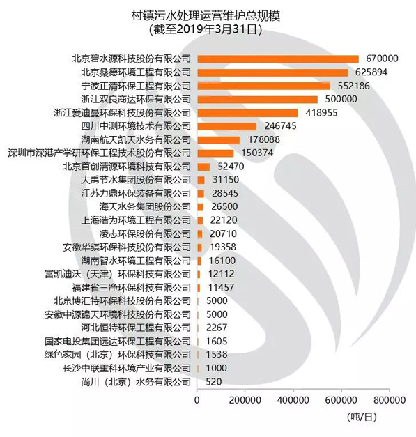 備注:該排名為企業(yè)中標(biāo)簽約且參與項(xiàng)目運(yùn)營維護(hù)的農(nóng)村污水處理項(xiàng)目設(shè)計(jì)能力加總。