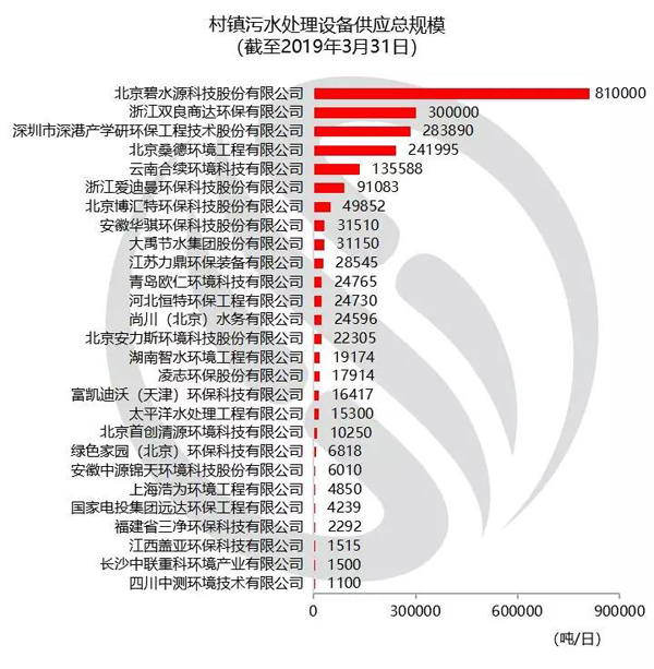 備注:該排名為企業(yè)中標(biāo)簽約且提供設(shè)備的村鎮(zhèn)污水處理項(xiàng)目設(shè)計(jì)能力加總。