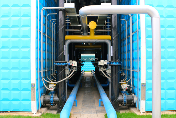 合肥市南淝河流域應(yīng)急污水處理服務(wù)樅陽路泵站工程占地約1053.5m2,設(shè)計處理能力5000m3/d,采用我司研發(fā)的Rapid-Move黑臭水體旁路處理系統(tǒng)——“魔方磁(磁混凝系統(tǒng))+魔方尊(BAF系統(tǒng))”組合工藝產(chǎn)品。進(jìn)水從幸福路下方自流箱涵末端取水,當(dāng)水量不足時,從樅陽排澇泵站進(jìn)水前池泵提取水或濱河路污水管網(wǎng)泵提取水,出水通過管道接入樅陽排澇泵站出水箱涵。