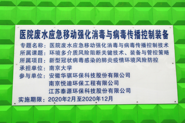 專題概況:由國家科學(xué)技術(shù)部、中國工程院立項(xiàng)的“新型冠狀病毒感染的肺炎疫情環(huán)境風(fēng)險(xiǎn)防控”之“醫(yī)院廢水應(yīng)急移動強(qiáng)化消毒與病毒傳播控制技術(shù)”專題,由南京大學(xué)牽頭承擔(dān),安徽華騏環(huán)??萍脊煞萦邢薰緟⑴c主要裝備研發(fā)和生產(chǎn)。