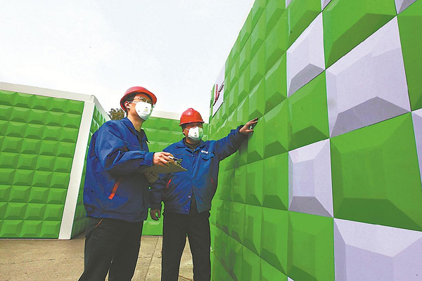 近日,安徽省馬鞍山市慈湖高新區(qū)華騏環(huán)??萍脊煞萦邢薰敬群O(shè)備分公司技術(shù)人員在檢驗(yàn)新生產(chǎn)的醫(yī)療廢水生物強(qiáng)化反應(yīng)設(shè)備。應(yīng)“新型冠狀病毒感染與環(huán)境的關(guān)系及風(fēng)險(xiǎn)防控”攻關(guān)項(xiàng)目需要,該公司2月12日緊急復(fù)工復(fù)產(chǎn),產(chǎn)品用于駐點(diǎn)黃岡市傳染病醫(yī)院醫(yī)療廢水處理。 湯生信 攝