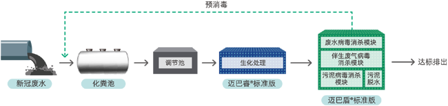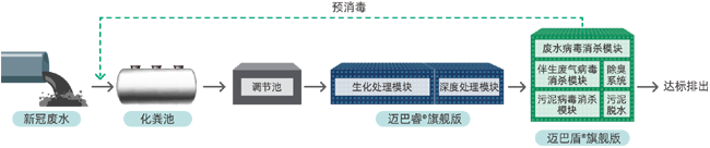 邁巴盾產(chǎn)品為新冠廢水病毒、伴生廢氣中氣溶膠病毒和伴生污泥中病毒的消殺單元。