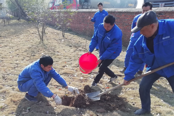 植樹現(xiàn)場(chǎng),挖坑、扶苗、對(duì)齊、填土、踩實(shí),每道工序都認(rèn)真細(xì)致,員工們熱情高漲、干勁十足,齊心協(xié)力將一顆顆樹苗植入土中。五河華騏的老員工陳麗萍說:“這已經(jīng)是公司第四次舉辦植樹活動(dòng)了,每次大家都積極地參與進(jìn)來,植樹活動(dòng)后,大家都自發(fā)地對(duì)自己栽種的樹做好后續(xù)養(yǎng)護(hù),就像終身責(zé)任制一樣?!?