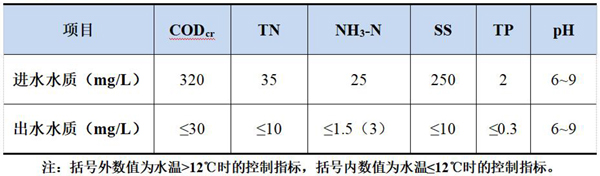 設(shè)計(jì)進(jìn)出水水質(zhì)表